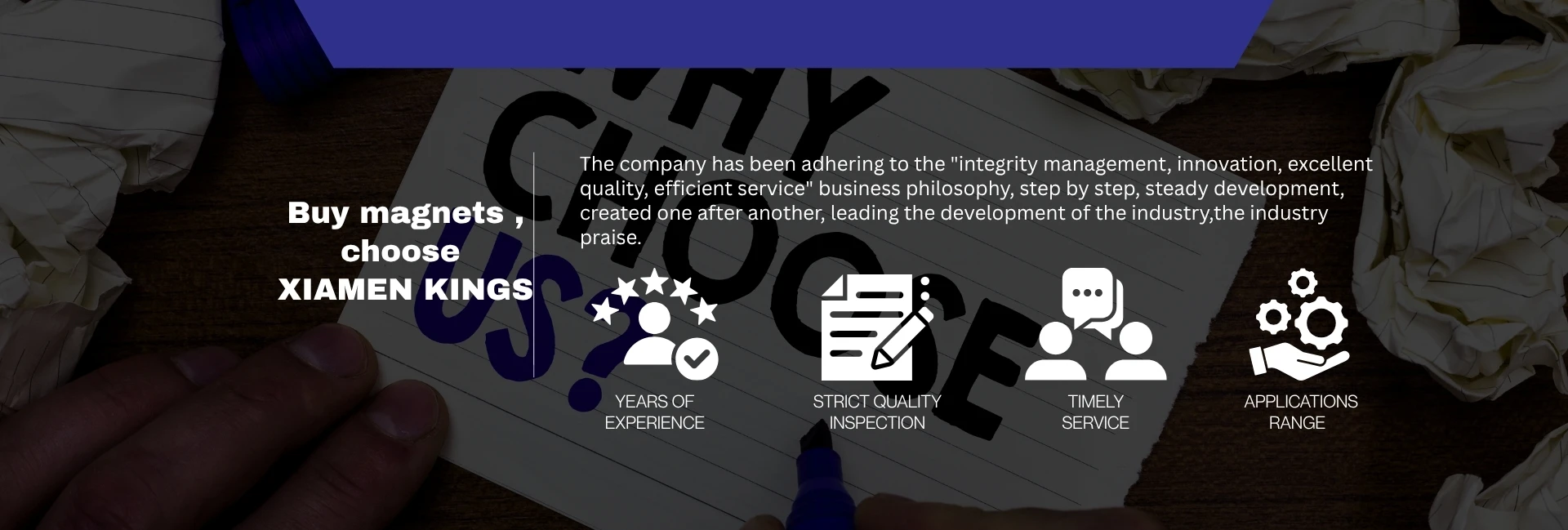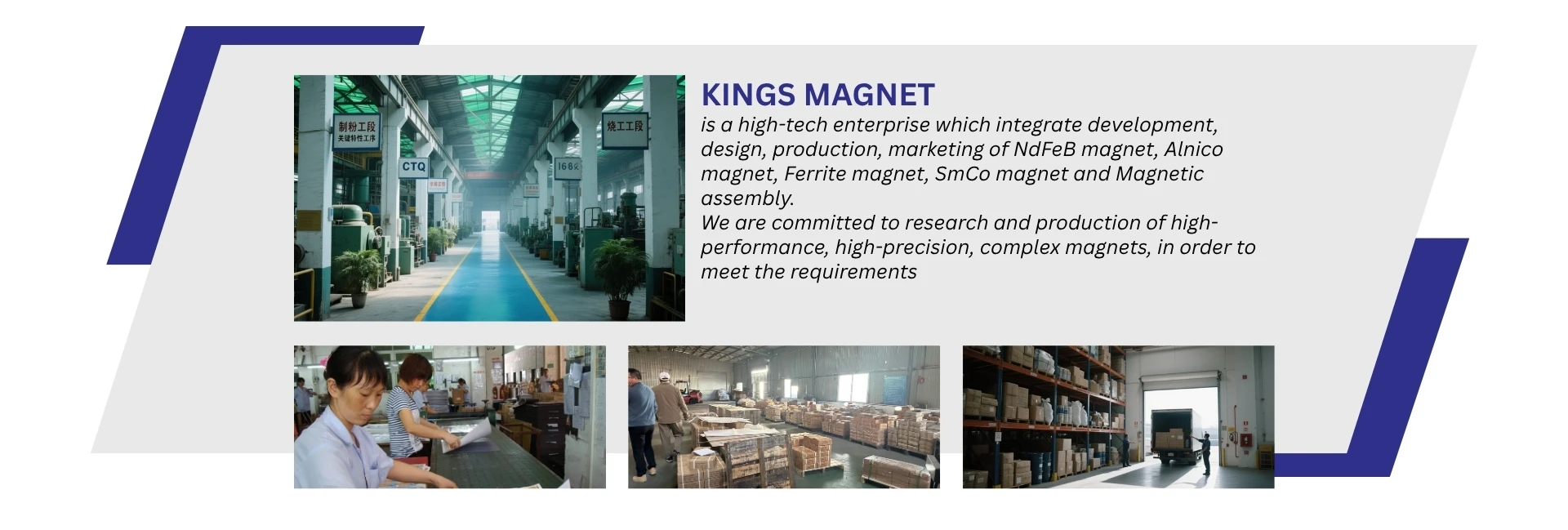 Xiamen Kings Magnet Co., Ltd. Productos principales:Imán de neodimio/imán de neodimio UNIDO/imán de olla/imán recubierto de goma/soporte de soldadura Magnética/imán de Alnico, imán de ferrita, acoplamiento magnético, imán SmCo